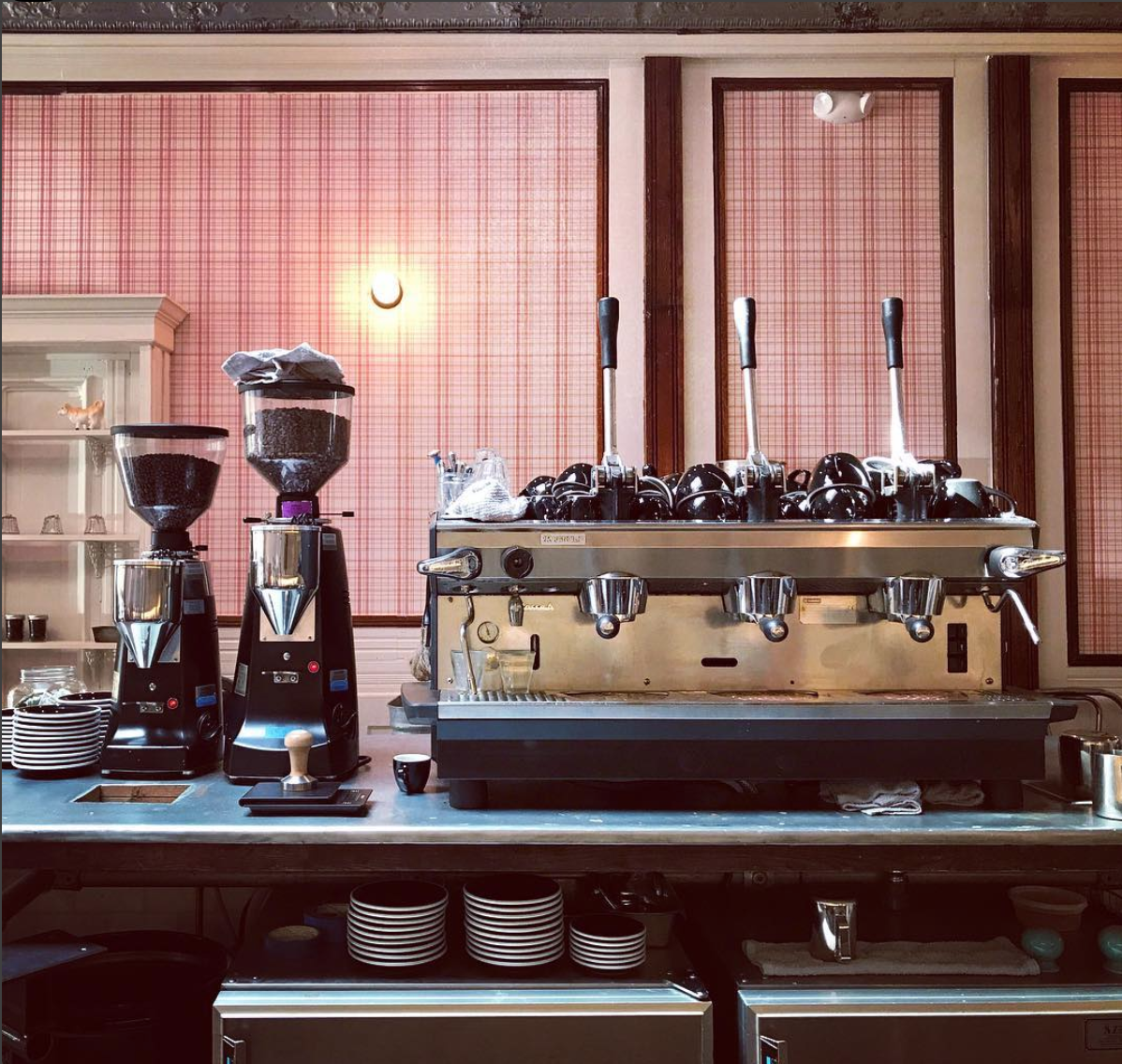 Craft coffee drinks & an array of sweet & savory baked goods in a small cafe with an old-timey feel.